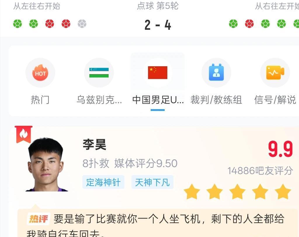 开云-U23亚洲杯中国男足评分,拜合拉木第七,向余望第三,第一无争议
